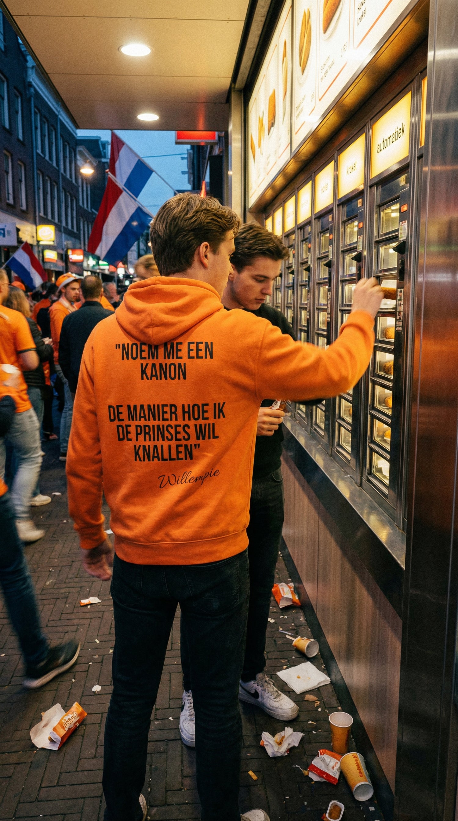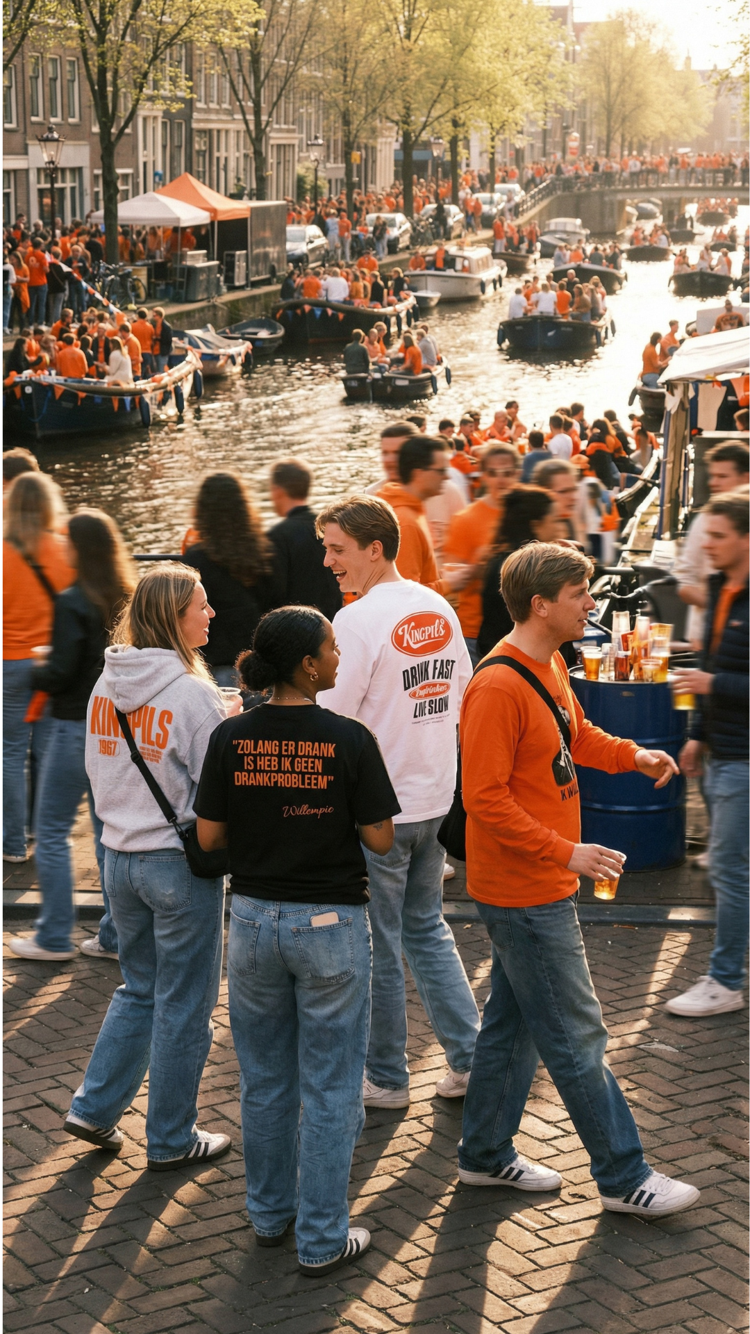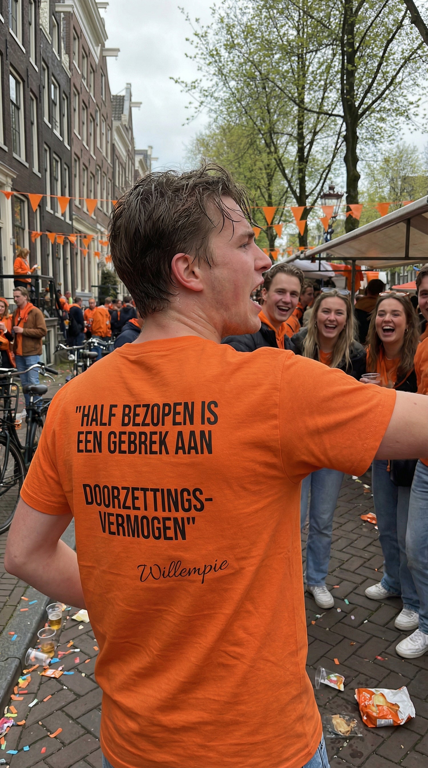 Geen standaard oranje dit jaar. Koningsdag is chaos, gezelligheid en momenten die je niet plant. Waarom zou je dan een standaard shirt dragen. Met KingPils maak je je eigen shirt of hoodie met een tekst die bij jou past. Iets wat opvalt, blijft hangen en later op elke foto terugkomt. Dit is jouw Koningsdag. Draag ’m zoals jij wilt.